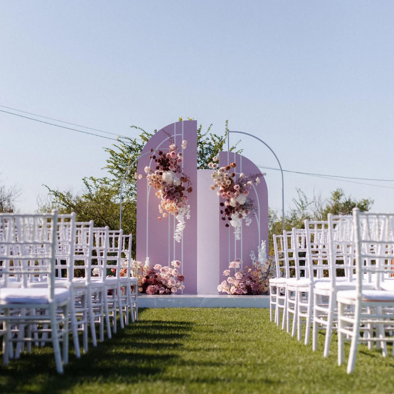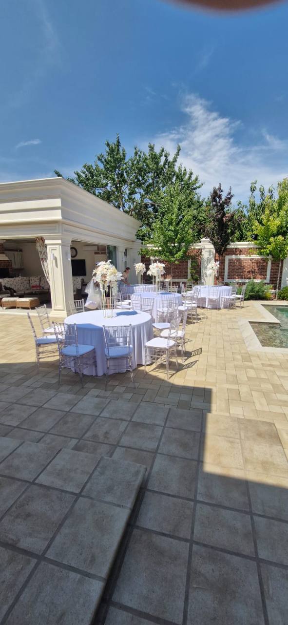 Скатерти, чехлы и акценты — чтобы площадка выглядела цельно.