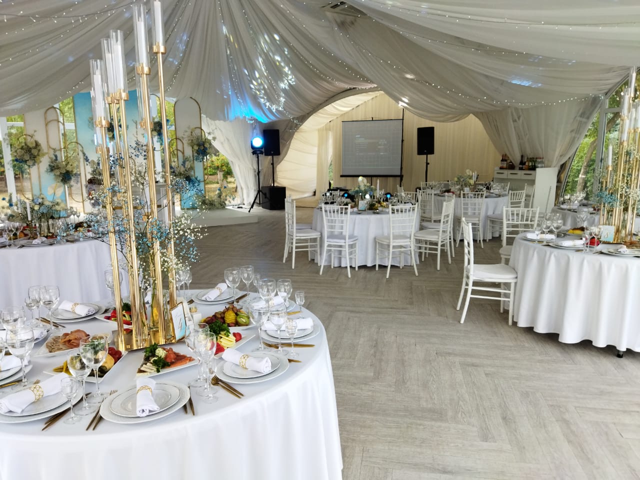 Столы и стулья, текстиль и аксессуары — соберём комплект под формат: банкет, фуршет, выездная церемония или корпоратив.