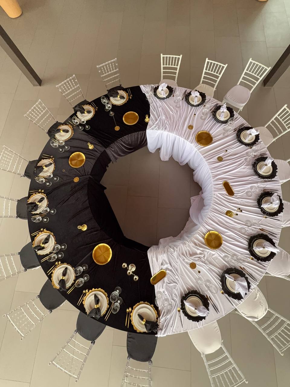 Стол круглый с чёрной стрейч-скатертью